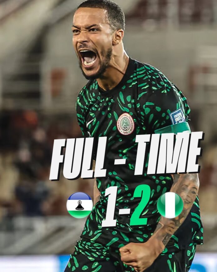 The Super Eagles of Nigeria today secured 3 extra points in a 2:1 victory over the Crocodiles of Lesotho in the ongoing FIFA 2026 World Cup qualifiers.